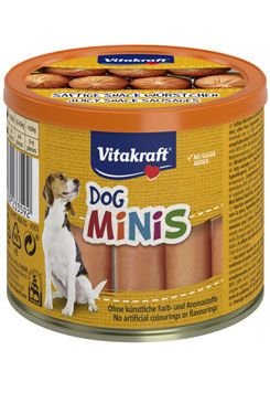 Doplňkové krmivo pro psy. Kuřecí minipárečky jsou méně okořeněné, bez slupky a neobsahují úmělá barviva ani aromatické přísady.