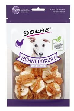 Pamlsky pro psy Dokas jsou bez konzervantů, umělých barviv, dochucovadel a glycerinu. Sáček má praktické uzavírání, pamlsky tak zůstanou déle čerstvé a voňavé.