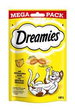 Kočky šílí po neodolatelné chuti kočičích pamlsků DREAMIES™. Lahodné a křupavé zvenku, měkké uvnitř – kočky jednoduše nedokáží odolat skvělé chuti DREAMIES™. Tak jen do toho, zatřeste sáčkem a sledujte, jak se k vám vaše kočka rozběhne.