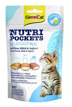Doplňkové krmivo pro kočky Gimcat nutri pockets junior mix jsou křupavé kapsičky s lahodnou náplní. Mladé kočky potřebují třikrát více vápníku než dospělé kočky pro normální vývoj kostí, svalů a zubů.Taurin je základní živinou pro kočky.