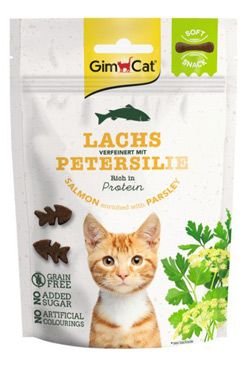 GimCat Soft Snacks Losos s petrželí je jedním z řady měkkých pochoutek pro kočky, kde výrobce kombinuje protein s voňavým doplňkem, který zaujme každou kočku. Podáváme až dvacet kousků pamlsku denně, k tomu misku s čerstvou vodou. Nezapomeňme, že jde o pochoutku, která nenahrazuje běžnou stravu.