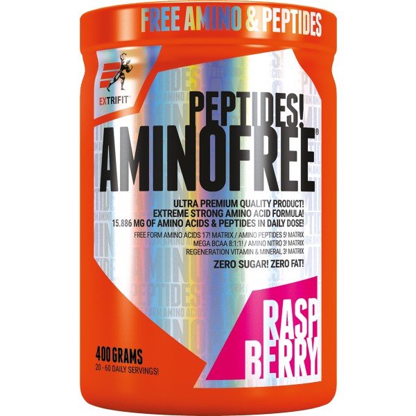 AminoFree Peptides je absolutní světová špička v aminokyselinových suplementech. Jedná se o vůbec nejčistší, nejrychlejší a nejlépe vstřebatelnou formu základních stavebních kamenů lidské svalové hmoty. Extrifit vyvinul zcela výjimečný produkt, který je složen z vysoce kvalitních a velmi drahých komponent. Aktuálně ve světě aminokyselin a peptidů nic lepšího, čistšího ani rychlejšího pro růst svalů a svalovou regeneraci neexistuje. Jedná se o sofistikovanou kombinaci výhradně volných (free form) aminokyselin v plném aminospektru s naprosto novou a revoluční formou značkových peptidů PepForm. Tyto patentované peptidy jsou v produktu zastoupeny v masivní míře a jedná se o peptidy těchto nejdůležitějších aminokyselin: arginin PepForm, glutamin PepForm, leucin PepForm, isoleucin PepForm, valin PepForm.