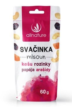 Allnature Svačinka Mlsoun se skládá ze samých lákavých dobrot. Je speciálně vyrobená pro všechny mlsouny, kteří neodolají sladkému, přesto se však snaží žít zdravým životním stylem. Kombinace vybraných oříšků a sušených plodů je nutričně vyváženým zdrojem vitamínů, minerálních látek a dalších živin, které náš organismus potřebuje. Již jedna hrst Allnature Svačinky Mlsoun zažene chuť na sladké, aniž byste museli mít jakékoli výčitky. Nezní to skvěle?