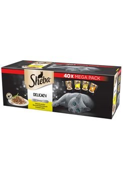 Prémiové krmivo pro kočky disponuje kuřetem, drůbežím a krocaním masem v lahodném želé. Sheba kapsička Drůbeží výběr 40×85 g je vhodná pro dospělé kočky.
